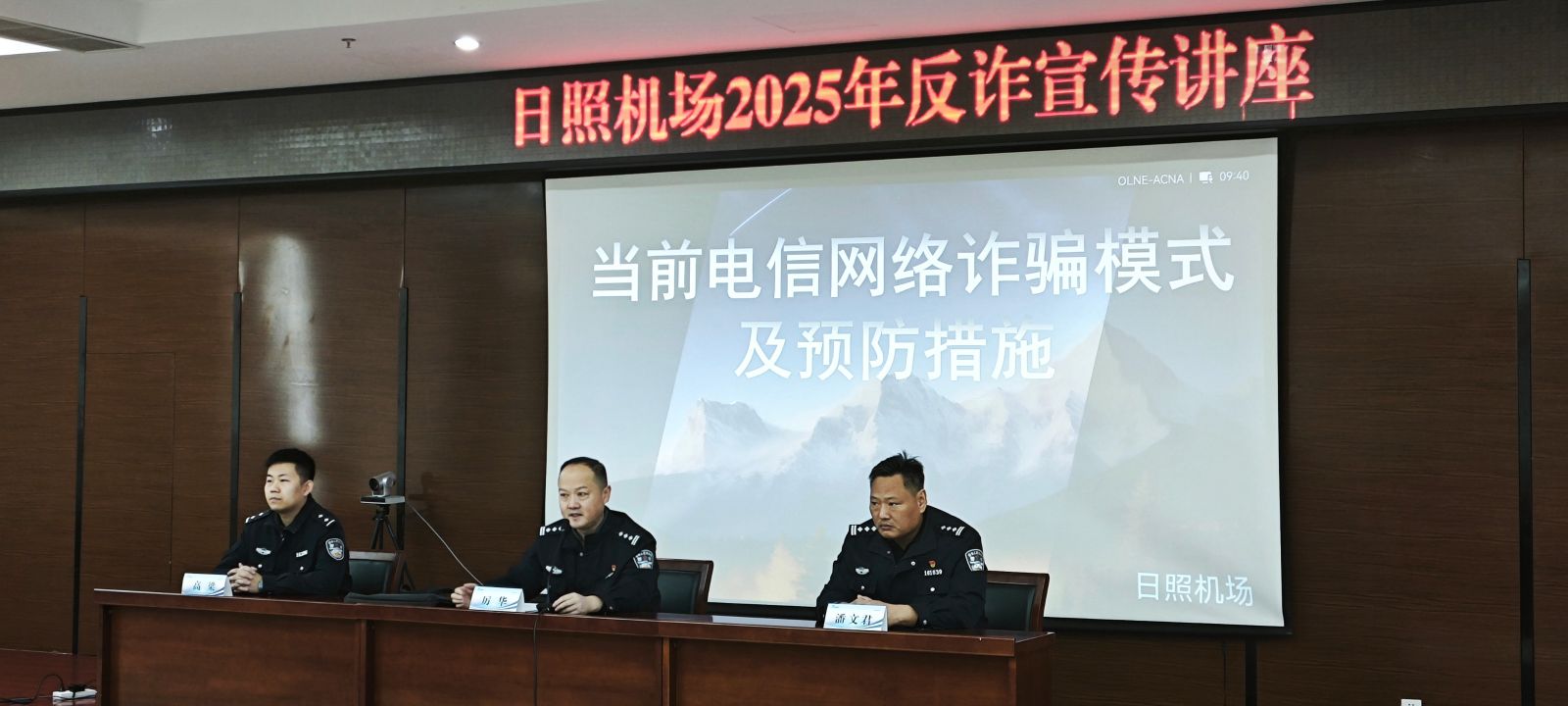 当日上午9时30分,反诈骗与反恐专题培训在日照机场综合办公楼二楼会议室举行。日照市公安局机场公安局党总支委员、一级警长厉华,候机楼派出所所长潘文君及刑侦大队民警高梁担任主讲嘉宾。会议开始前,厉华警长、潘文君所长等向与会人员分发了反诈骗宣传单页,结合《中华人民共和国反电信网络诈骗法》,系统剖析了当前高发的电信网络诈骗模式与防范要点,并对反恐防范知识进行了专业讲解,引导学员掌握识别恐怖活动迹象、规避安全风险的实用技能。课程内容翔实、案例生动,有效提升了学员识别诈骗、应对风险的能力。
